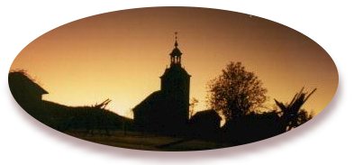 Kyrkan i gryningsljus.